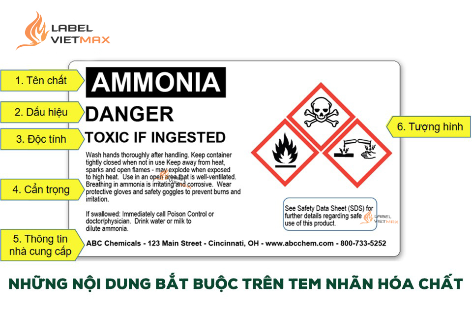 Tem hoá chất là nhãn GHS (Globally Harmonized System) gắn trên bao bì/đựng hoá chất để truyền đạt nguy cơ, biện pháp phòng ngừa và thông tin nhà cung cấp. Ở Việt Nam, việc phân loại & ghi nhãn theo GHS là bắt buộc đối với hóa chất lưu thông, được hướng dẫn trong TT 04/2012/TT-BCT và NĐ 113/2017/NĐ-CP (hướng dẫn Luật Hóa chất).