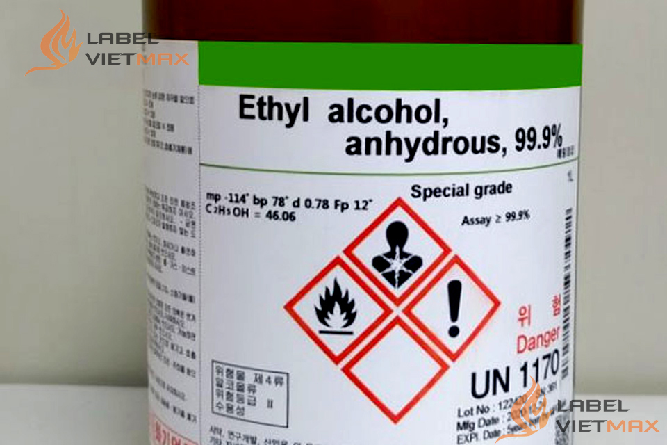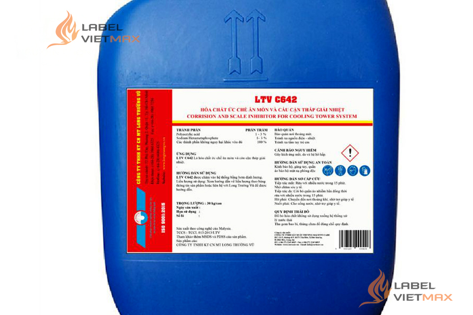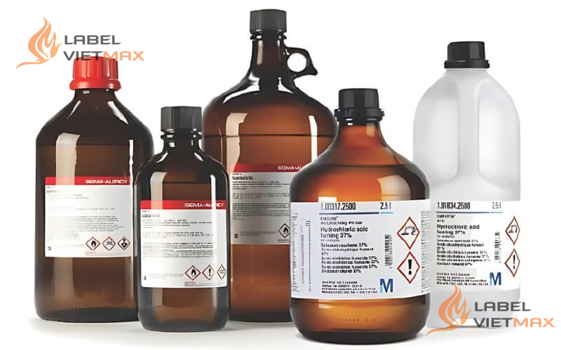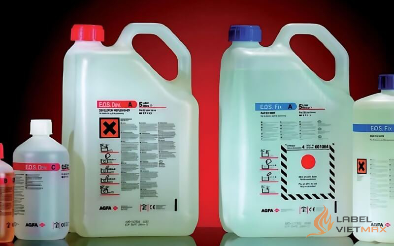 (Tư vấn nhanh: hóa chất lỏng – ẩm/ngoài trời → ưu tiên PET/PP + resin ribbon để chống phai & dung môi.)
